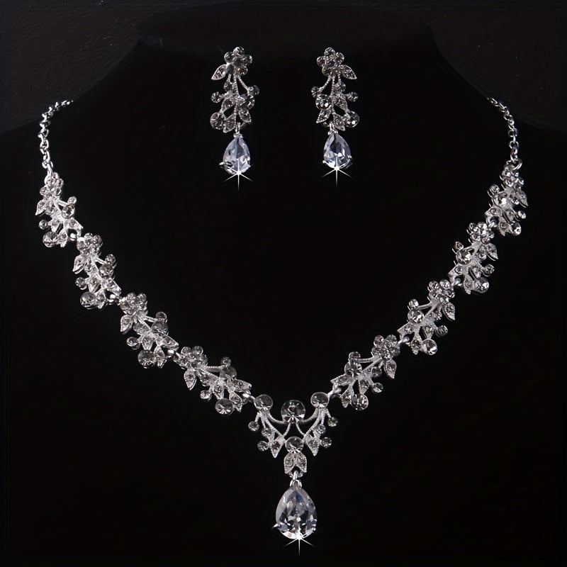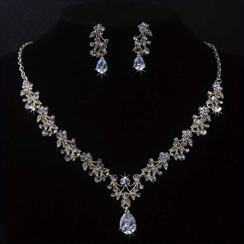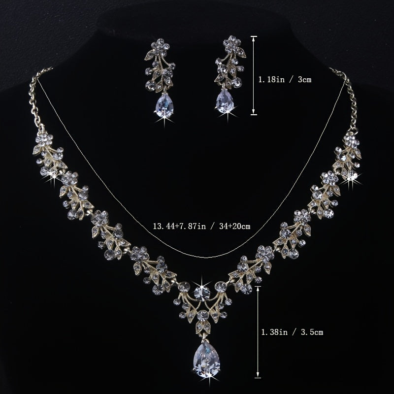 Golden Silvery Zircon Rhinestone Necklace & Earrings