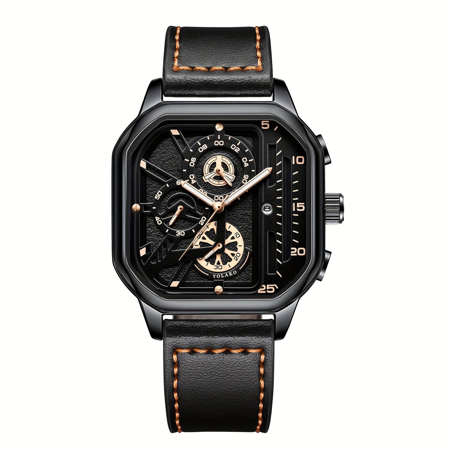 Men's Casual Quartz Watch, Alloy Case, Faux Leather Strap, with Date Function, Electronic Quartz Movement, Battery Powered (Button Battery), Non-Rechargeable
