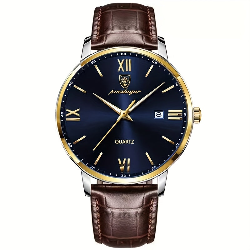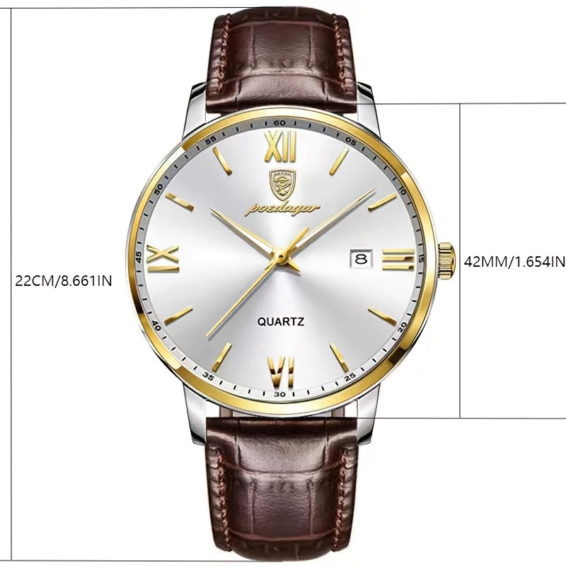 Men's Watch with a Leather Strap,, Luminous, Featuring a Calendar, Suitable for Business And Casual Wear