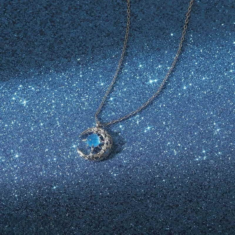 Moon/Aqua Curb Chain Pendant