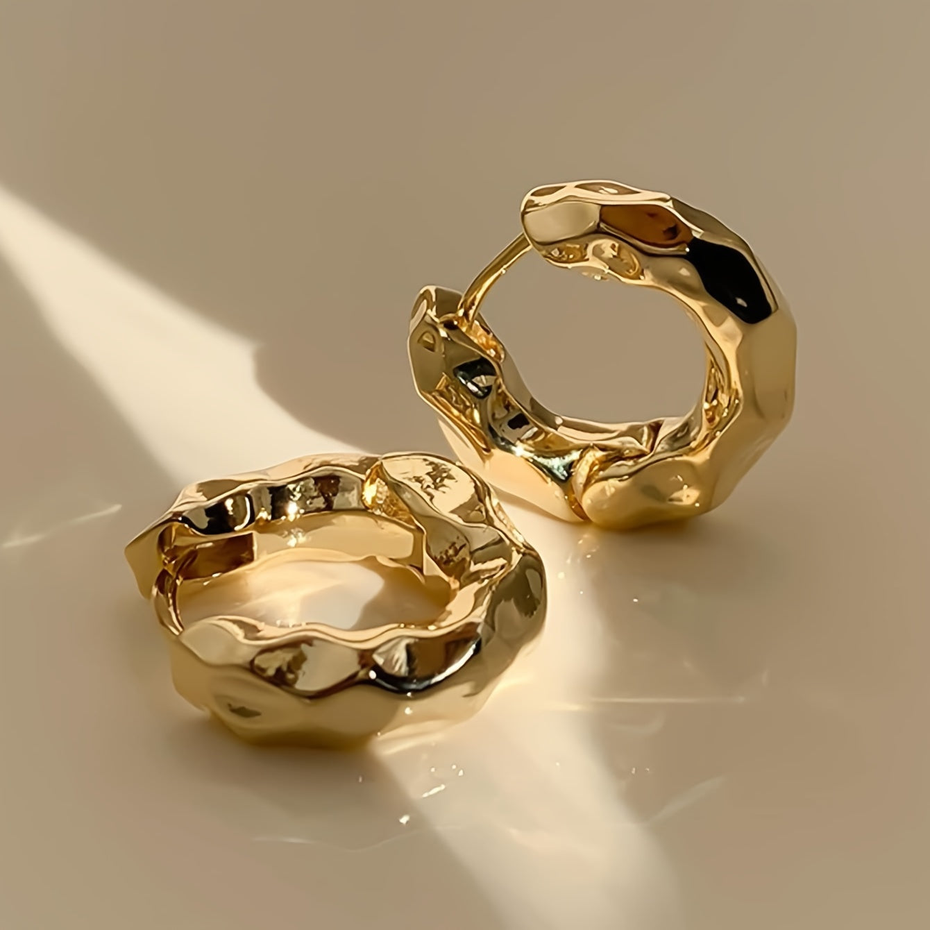 Tiny Exquisite Pleated Hoop Earrings Copper Jewelry Vintage Leisure Style Trendy Female Earrings